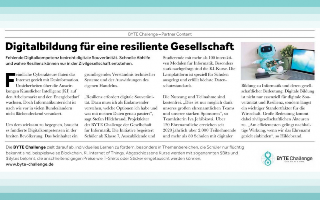 Auszeichnung als “BYTE Schule” | 100% Free of charge